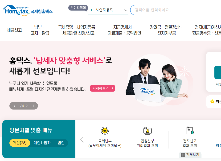 네이버나 다음 구글의 검색창에 홈택스를 검색하여 공식 홈페이지로 접속을 합니다. 갑자기 홈텍스에서 차량가액을 조회한다는것이 의아하실텐데요 저도 처음에는 세금 신고만 하러 방문하는 사이트에 차량가액을 조회하니 조금 어색했습니다.